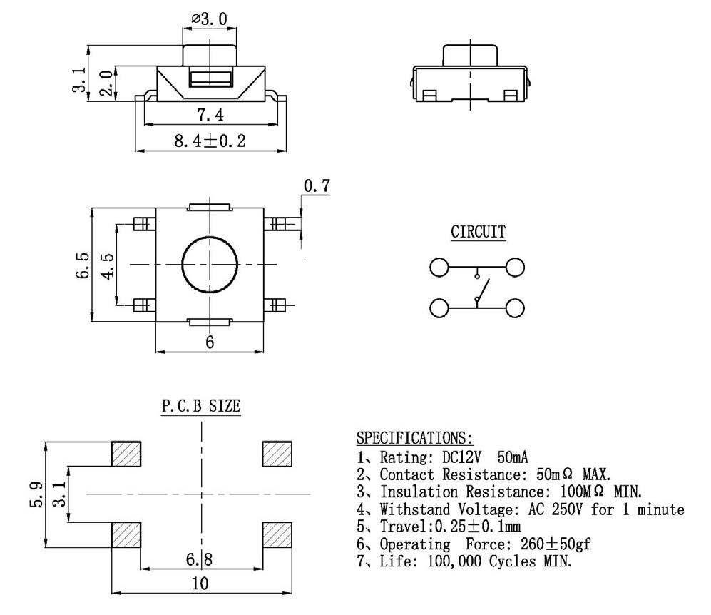 6*6.5*3.1贴片SMD轻触开关显示器电脑周边智能家居电动工具开关